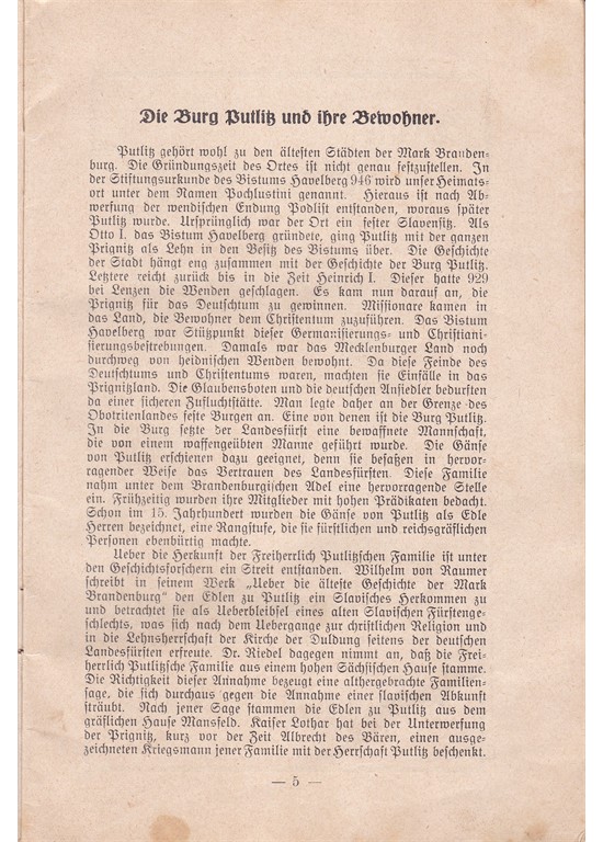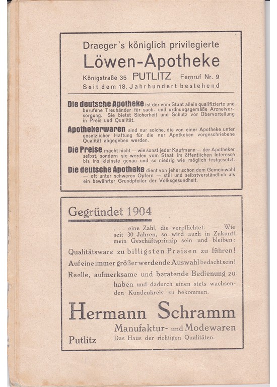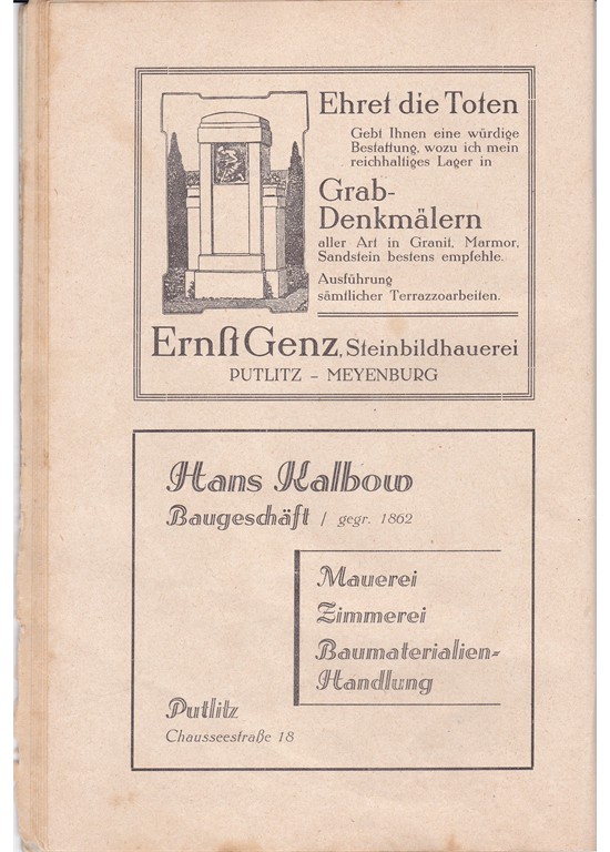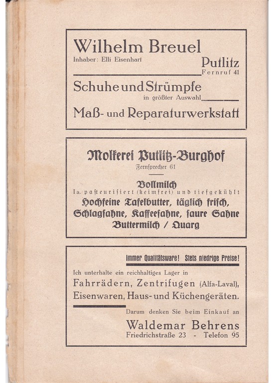 Noch ein Historisches Dokument von Putlitz, dass leider nicht ganz vollständig ist aber sehr schön